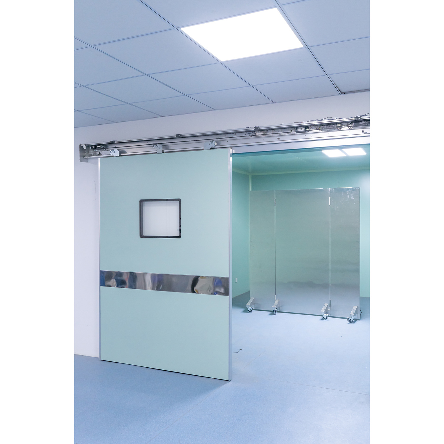 核医学铅门胶槽设计便于拆卸,方便维护门体顶部带铁梁,满足门体悬挂要求:门体填充纸板,两侧喷涂大平板钢板,平整度高,符合医院卫生要求。门体的颜色和尺寸可以一起选择,也可以根据手术室门的尺寸进行设计。它们的滑动运动是在平稳、重载、无噪音的单轨上进行的。滑动X射线屏蔽手术室门也可用。防护铅玻璃可以插入门内,以提供观察区域。